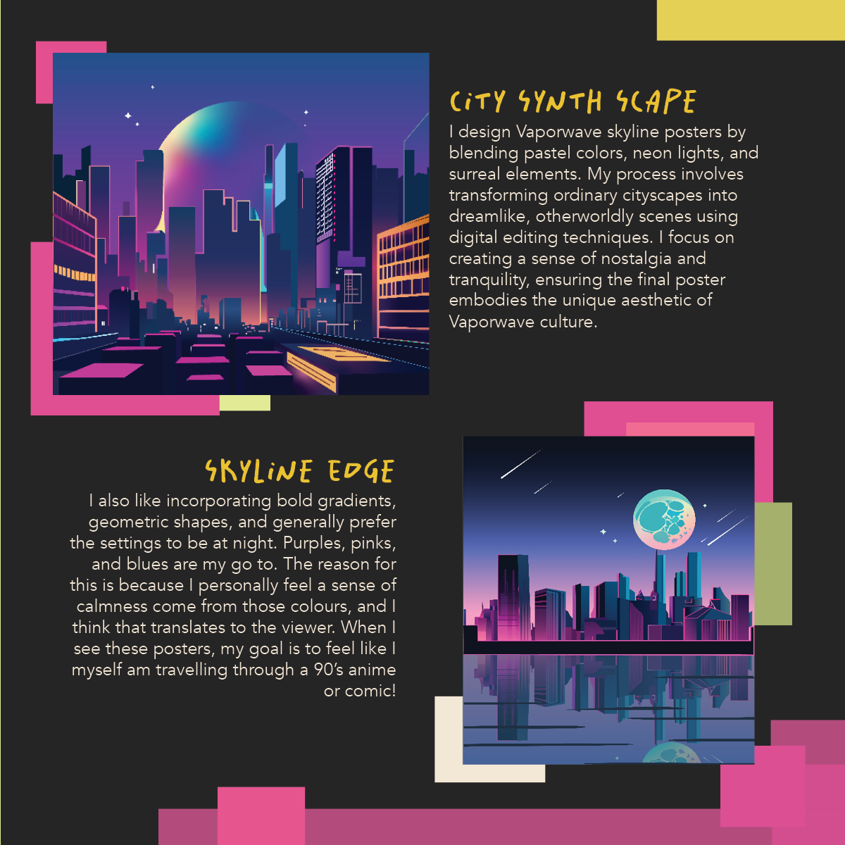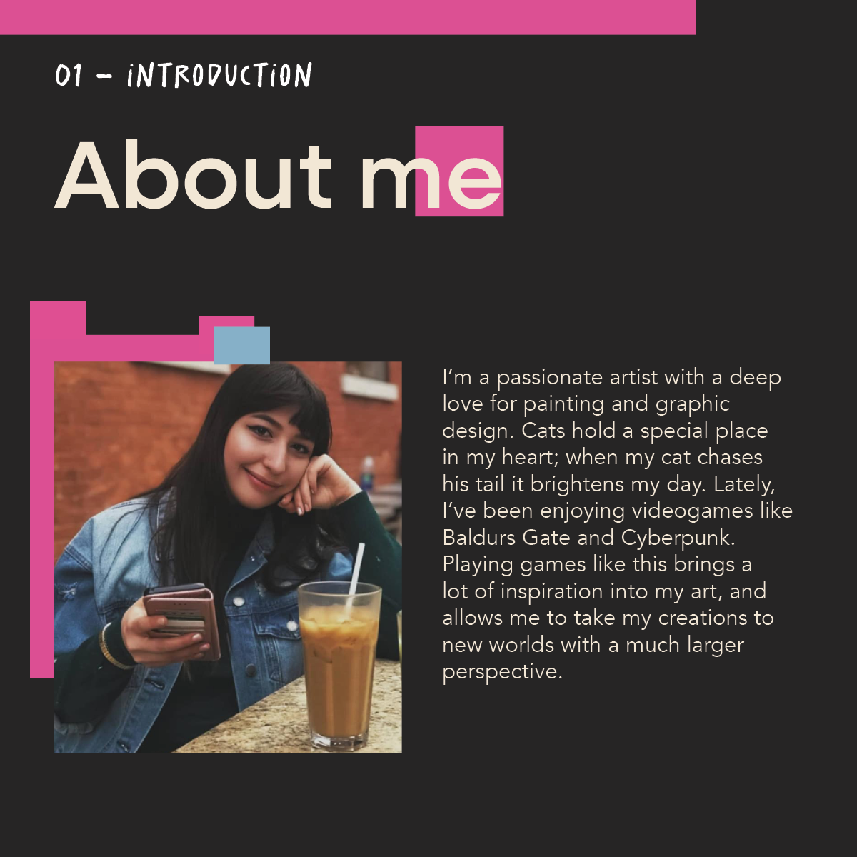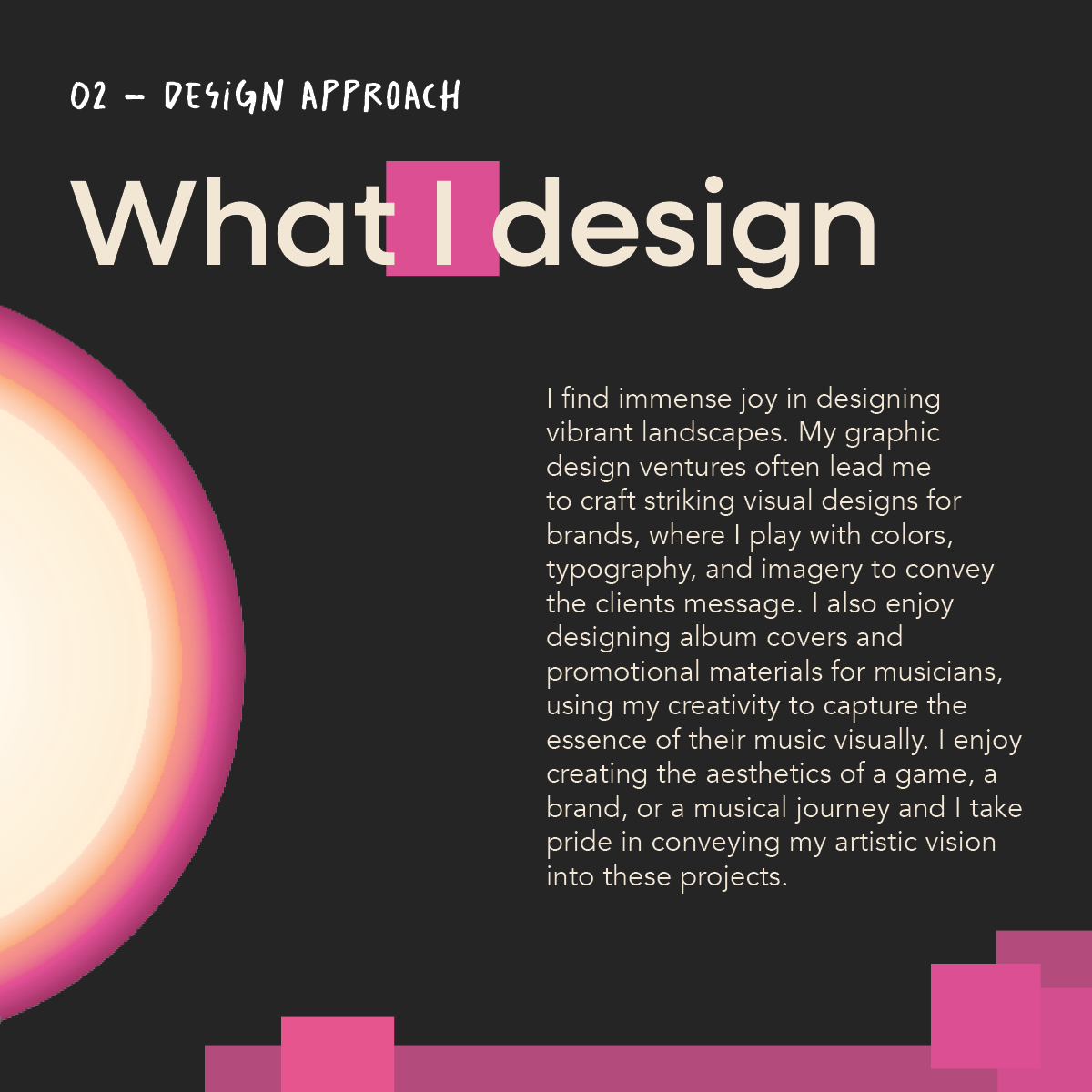 I recently created a leave-behind book to showcase my graphic design work to potential clients. The book has a lot of geometrical designs and vibrant colours set against a dark background, designed to captivate the eye and create a sense of visual intrigue. I wanted to make a lasting impression, so I used this design to feature my portfolio in a creative and interesting way. Each page showcases my best projects, demonstrating my skills and expertise. I hope this visually striking book helps clients see the passion and creativity I bring to my graphic design work.